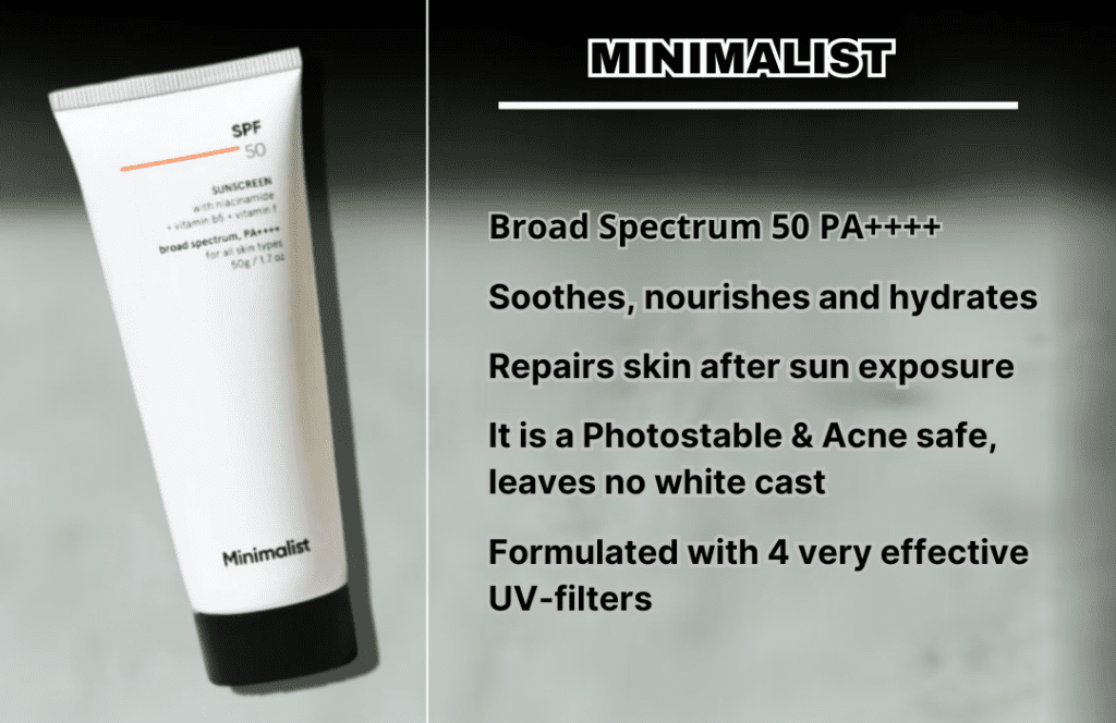 To protect against UVA and UVB rays, this sunscreen is made with four very powerful UV filters: octocrylene, titanium dioxide, avobenzone, and Uvinul T 150. Enhanced with vitamins A, B3, B5, E, and F, which soothe, nourish, and hydrate skin in addition to healing it from sun damage. It is a sunscreen that is safe for acne and photostable, leaving no white cast behind after application. It also spreads easily, much like a mild moisturiser, and doesn’t feel heavy or leave behind unwanted residue. It can be used by people having dry/normal, sensitive, oily/combination, acne-prone skin. It retails at the price range of 300-400 rupees, has a rating over 4.5 stars and can be directly bought from the official Minimalist website or you can purchase it from Amazon, Nykaa.